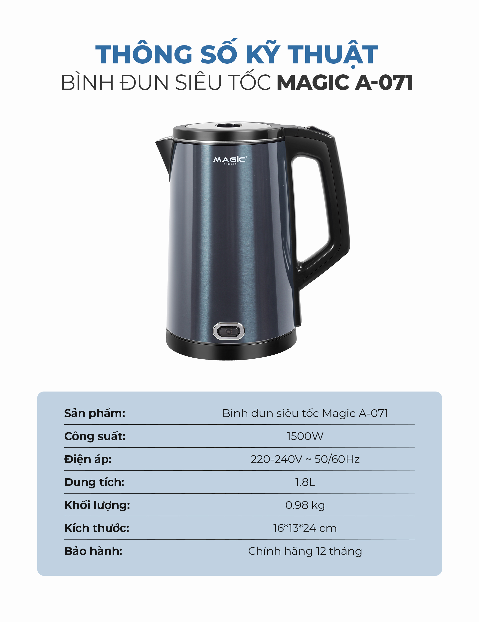 - Sản phẩm: Bình đun siêu tốc Magic A-071