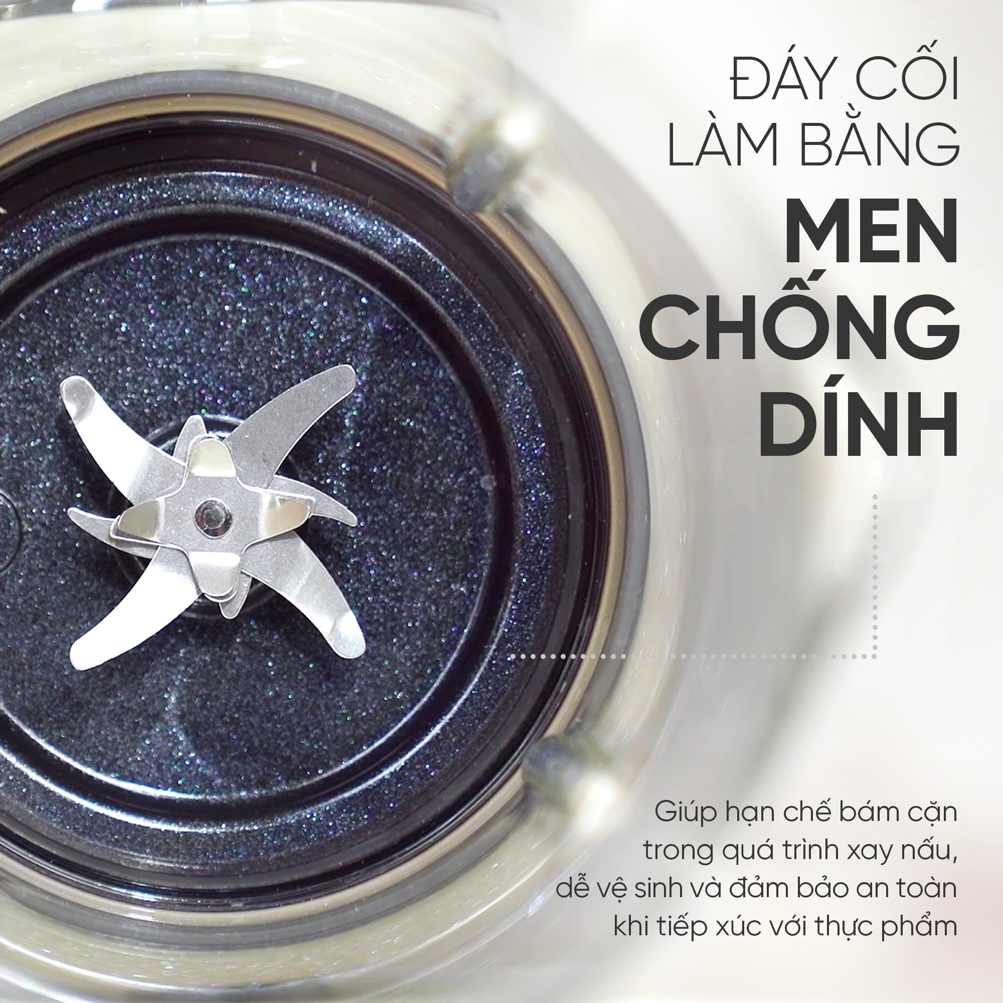 Động cơ 1100W sử dụng motor 100% đồng cho khả năng xay khỏe, nấu nhanh, vận hành ổn định, êm ái và hạn chế quá nhiệt, phù hợp dùng hằng ngày.